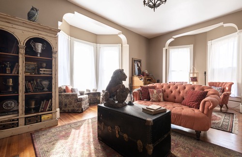 This house was built in 1885 by a civil war lieutenant and has only had very few owners in 136 years. Each owner worked to keep the architectural detail. The beautiful and creepy exterior has had only minor changes in over a century. High ceilings, the original hardwood floors, and beautiful bay windows in almost every room. The house has been lovingly renovated not just flipped. It has been modernized for comfort while staying true to its roots. You’ll find a modern kitchen with everything you need to prepare a meal. There are 2 full bathrooms available to all 5 themed bedrooms. The lower level bedroom does not have access to a same level full bath as the original house was built before modern plumbing or electric. You’ll find two comfortable seating areas and a large dining room for gathering. This will easily accommodate the 10-guest maximum.
