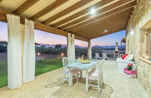Enjoy peace and quiet on the large covered terrace of 80 m², with a dining table, barbecue, and sun loungers. In front of this terrace, there are 150 m² of lawn where your children can play, next to the well-kept garden. This idyllic house invites you to spend a relaxed and peaceful holiday. The historic center of Alcúdia is very close, just 5 minutes by car, where you can enjoy restaurants and shops. The bay of Puerto de Alcúdia, with its fine sandy beaches, is only 10 minutes away by car.