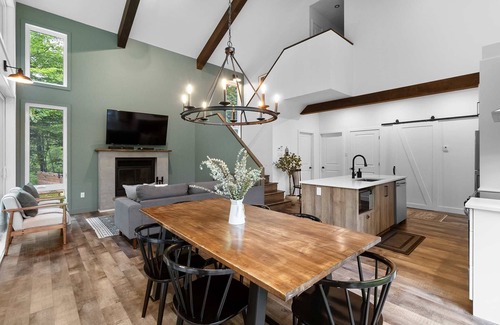 This stunning new property, featuring a cathedral ceiling and large windows, immerses you in a classic chalet ambiance perfectly in harmony with nature. Tastefully decorated, Le Forestier combines charm and modern comfort. Heated floors and a wood-burning fireplace ensure a cozy warmth, perfect for relaxing after a day of winter activities or enhancing your restful moments.