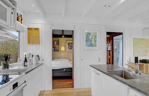 In the first row to Grønsund lies this cozy cottage. The house offers a direct view of the water and is located in a cul-de-sac. Cozy living room and kitchen with access to the covered terrace. Bathroom with shower cabin and in the garden is a Wildmarksbad where you can enjoy the warmth and the view of the water. In the house there are two TVs, one of them only with Chromecast. Smaller beach with bathing jetty. Experience the maritime atmosphere at the harbor, where many sailboats dock in the summer. Take the ferry Ida to INsel Bogø and if you like fishing, you will find good fishing waters here.