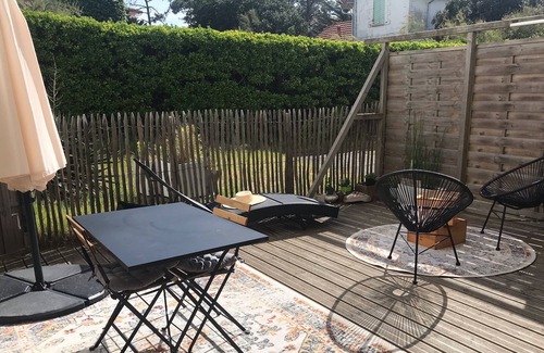 Housing for 4 people very quiet, bright and completely renovated this year with a 30 m2 wooden terrace overlooking a garden, all facing south.