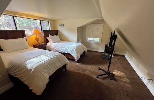 Your home away from home in Wrightwood with 9 bedrooms. This tranquil lodge offers a mix of 3 king beds, 5 queen beds, 1 twin bed, and 1 futon for a comfortable stay. With 8 bathrooms equipped with amenities like a bathtub and shower, guests will feel excellent during their stay. Enjoy the welcoming atmosphere of this lodge, complete with heating, a washing machine, iron, AC, and WiFi. We'll be available to answer any questions while you stay at our place.