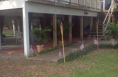 Hidden treasure is an island style beach cottage situated amongst beautiful old oak trees. The house is located on a quite lane about a block long that has the ocean at one end and the sound at the other. Though we are on an interior lot, it is just steps (approximately 80 yards) to either the private beach access or to the small ramp that you have access to the sound from. The cottage itself was fully renovated in 2008-- the interior was gutted and the entire space was redone. It has an open floor plan for the living and kitchen area and all areas look out to the trees. A screened porch and a rear deck can both be accessed from the main living area. A deck lines one side of the house that leads from the screened porch to the covered front porch. Sitting on the screened porch is like being in a tree house-- branches arch gracefully all around you providing a pathway for squirrels and birds to bound from one to another. You can hear the ocean most days from this spot-- it is relaxation at its best. The cottage is about 900 square feet but feels larger because of the open floor plan and raised ceiling height in the living room. The floors are tile through out-- which is easy to clean. The two bedrooms provide sleeping for four-- one has a queen bed the other has a full size. Again it is hard to describe how wonderful it feels waking up to the sound of birds and the ocean and seeing the tree branches surrounding you. Totally relaxing!! Hidden Treasure is perfect for a family getaway, a couples retreat, or girls week away.