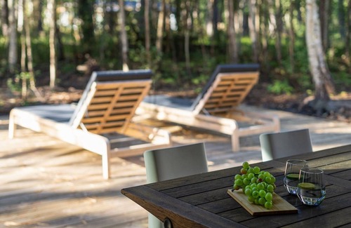 Single-family house, built in 2022. 475 m from the sea. Private: natural state property 2'424 m2. Outdoor shower, terrace (40 m2), barbecue. In the house: sauna, trampoline, washing machine, tumble dryer. Parking at the house. Grocery 4 km. Golf course 20 km. The owner does not accept any youth groups.