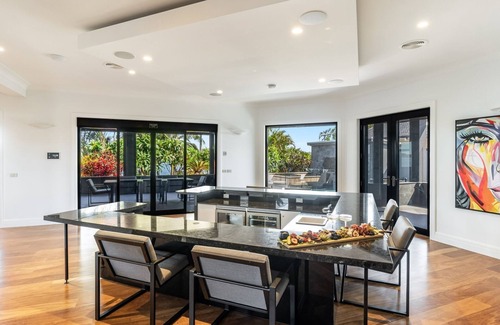 The huge designer kitchen is sure to impress with its granite bench tops, convection microwave, steam oven and warming drawers. There is also a private dining area and a servery that opens onto the BBQ area making this the beating heart of the home and where meals, memories and conversations will be cherished and shared.