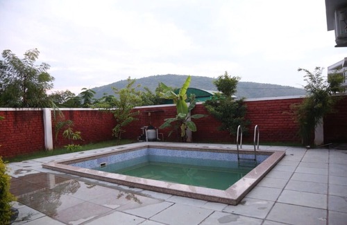 A beautiful home with 2 bedrooms and 2 bathrooms and a swimming pool and a beautiful garden.and well equipped kitchen . junoon situated in beautiful aravali hills.. its only 20 min drive from airport railway station and bus stand.and nearest mall is just 15 min away.Here u got full privecy with your loved ones.drinking water facility is available.clean and beautiful home is waiting for you located in aravalis