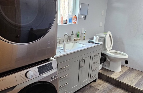 Walk into the Alaskan entryway that leads you through the main door to the vaulted ceiling living room. A well apportioned kitchen with all the home stocked items and utensils. On the first floor is the Primary bedroom with a king size bed, bathroom and washer/dryer. Walking up the stairs to the 2nd floor you will find a private bedroom with a queen size bed and a gorgeous view looking out to the Cook Inlet and water. There is plenty of parking for 2 cars.