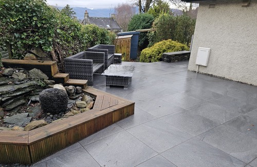 Pinecroft has an eclectic style of contemporary and traditional to create a relaxing environment for all to enjoy after a day on the fells or just staying in and reading a good book. Owner enjoys collecting original art with many paintings to enjoy. Accommodation consists of large open plan kitchen / diner, large living room, 2 double and one single bedroom, main bathroom and small ensuite. The main bathroom has a lovely bath and large 'walk in' shower area. A regular comment from many guests is that Pinecroft feels like a home. Outside there is ample off street parking, mature gardens all around, BBQ area and bike shelter with anchor points. there is a lovely fish pond (parents see below) and ample patio space providing plenty of scope for spending time outside. Views from the dining area are wonderful as you look over Keswick to towards Grisedale Pike where the sun sets. NEW - In November 2023 we have created a large level patio area that extends from the driveway up to and around the property, this is a major improvement with beautiful new slip resistant paving making the access step free (see photo's) and much easier for those with mobility concerns.