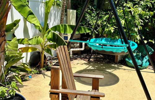 Our family home is a historic Key West style bungalow with the master and nursery connected by the master bath; upstairs is a refinished attic with two bedrooms and a jack and Jill bathroom. Pool and garden out back no sliding glass door and chefs, kitchen and bathroom with separate entrance from pool. Fire pit, sink, charcoal grill, and lounge area near pool. Walking distance to Bayshore, parks, ice cream, coffee, and several nice restaurants and 20 minutes to the beach five minutes to downtown.