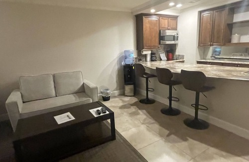 Tastefully furnished with a $2000 Diamond Back 65” Samsung TV, full and mini fridge, freezer, dishwasher, convection microwave oven.