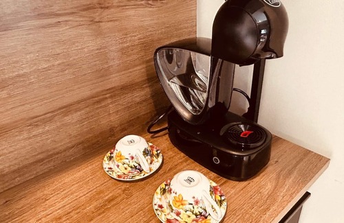 + Simple Kitchen with a microwave, a small fridge, a kettle, a coffee maker, and basic items.