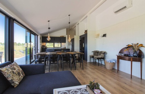 Single-family house, built in 2023. 500 m from the sea. Private: property 2'200 m2. Terrace (70 m2), barbecue. In the house: sauna, washing machine, tumble dryer. Parking at the house. Grocery 3 km. Golf course 12 km. The owner does not accept any youth groups.