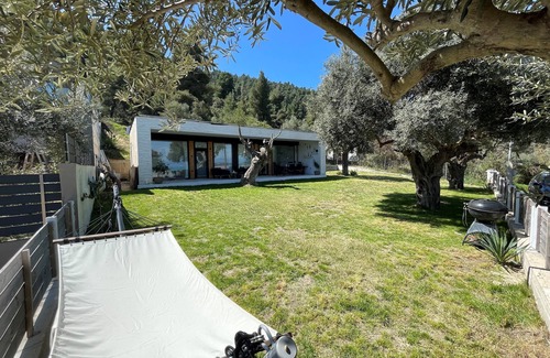 With spectacular sea view and 500m2 own garden this private villa is perfect choice for families how are looking for privacy by the sea. The villa is located in Vourvourou, Halkidiki, Greece just 200m from nearest beach, 300m from supermarket and restaurants.