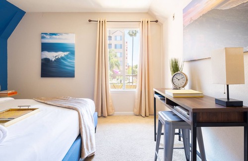 Luxurious king bed property in La Jolla UTC with resort style amenities including a pool, hot tub, gym, and salon — just minutes away from the beach, SeaWorld, SD Zoo, Balboa Park, the shopping, restaurants, cultural activities, UC San Diego, and medical centers