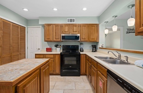 Unit 324L is an upgraded, renovated Gulf view unit that sleeps four. This 1-bedroom 1-bath unit features an expanded kitchen with a center island for additional storage and food preparation, or simply a place to hang out and talk while preparing meals. The unit includes a new stove, microwave, and dishwasher. Best of all, it offers a direct view to the outside, enabling you to see your children playing in the living room or on the deck.