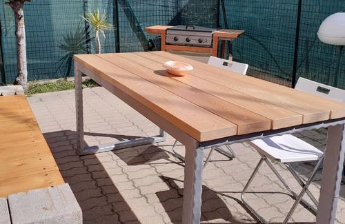 Casa al piano terra con giardino e parcheggio privato. Nel giardino potrete rilassarvi e godervi il fresco sotto un pargolato seduti in un comodo salottino. Inoltre, troverete anche un BBQ e una doccia idromassaggio. La casa è composta di 2 camere (una con letto matrimoniale e l'altra con 2 letti singoli,trasformabili in matrimoniale), entrambe con armadio capiente,una sala con angolo cottura e divano letto.Il bagno è dotato di doccia filo pavimento bidet,wc,lavello con mobile.L'appartamento è stato ristrutturato di recente e pensato per offrirvi il meglio in termini di praticità, confort e di sicurezza (aria condizionata,riscaldamento autonomo,infissi termo-acustici,tapparelle elettriche,grate,zanzariere ecc...).