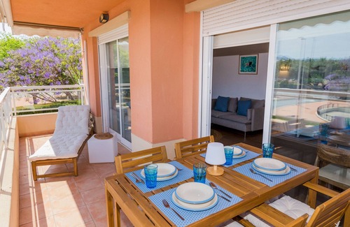 Beautiful apartment with terrace and free WiFi. Located in the exclusive La Senia residence that offers a sunny communal pool and outdoor shower. It is ideally situated in a quiet neighbourhood just 1km from the rocky beach of Montañar in Jávea and all services, such as bars, restaurants and activities.AccommodationThis comfortable, modern and bright apartment has 115m² and is tastefully decorated with air conditioning in the living room and all bedrooms. The property has 3 beautiful bedrooms with standing fans accommodating up to 6 people. The master bedroom has a Queen Size bed and features an ensuite bathroom with shower. The second bedroom is equipped with two single beds and is located next to a third bedroom with two other single beds. These two share a second bathroom with shower. The rest of the space is on the same level and offers a modern fully equipped independent kitchen with induction, with refrigerator, freezer, microwave, oven and dishwasher. The spacious living-dining room has a table with chairs and a comfortable sofa. Smart TV with panoramic screen, Internet and double doors giving access to the wonderful and spacious 12m² terrace.On this terrace you can enjoy an outdoor dining table.In the common areas you can enjoy a wonderful and spacious swimming pool, garden and outdoor shower.Advantages:Free internetPrivate parking in garage in the same buildingAir conditioning throughout the accommodationOutdoor dining terraceWashing machine and ironCommunity swimming pool with outdoor showerSituationThe accommodation is located just 1km from the Montañar area, a rocky beach that connects Jávea Port and Arenal Beach. Close to all services, beach bars, restaurants, pharmacies and supermarkets. It is also just 2 km from the sandy beach "Arenal Beach". The nearest airport is Alicante airport, which is 99km away.Additional notes:Supplies are included in the rental price as long as responsible consumption is madeA cot and a high chair are available upon request (additional cost)House rules:No groups of young people under 25 are allowedNo parties or events are allowedSmoking is not permittedPets are not allowed
