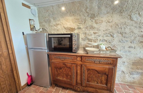 -> A dining area, a fully fitted and equipped kitchen (hob, extractor hood, microwave, oven, fridge, dishwasher, Nespresso coffee machine, kettle…). Everything you need to cook is at your disposal. A welcome kit is offered including tea, coffee, sugar, and biscuits.