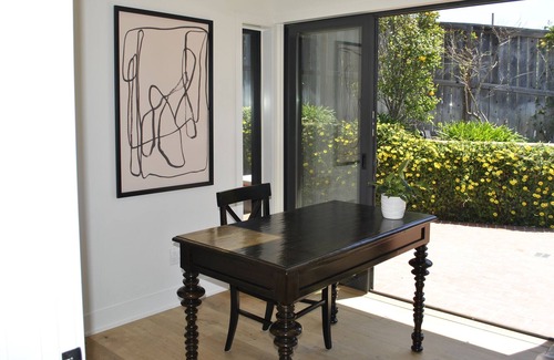 The office has sliders to the backyard and windows looking toward the ocean. We have high speed internet throughout the property.