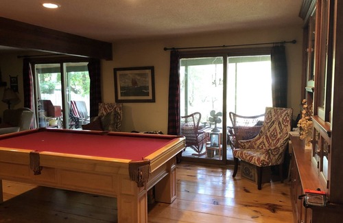 This rustic home is on Lake Minnetonka and close to town, best of both worlds. Enjoy lake access, bonfires, screened porch. Walk to historic Excelsior with plenty of restaurants, shops, coffee/wine bars and entertainment. Come enjoy your Thanksgiving holidays in this comfortable family friendly place. Amenities include a wood burning fireplace, copper top bar, nice stone patio that overlooks the regional bike trail, fenced area that has kid's play structure, screen porch & large deck overlooks the lake, docks for fishing, full country kitchen. We have a large family room with pool table and ping pong, living room boasts a baby grand. Master on the ground floor has spa bathroom. Queen bedroom with lake view, 2 twins cowboy room,& double and twin lake view on second floor with shared bathroom. This house will not disappoint.