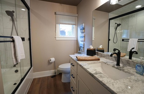 Introducing this stunning Lake Macatawa waterfront home in an ideal south side location near Holland's famous channel, which leads to world class boating, recreation, Lake Michigan, and endless memories. This 1930's home exudes features of yesteryear and is newly rebuilt and renovated. The first floor features an inviting great room with incredible lake views, a living room with a cozy fireplace with 2 sleeper sofas, a gourmet kitchen with everything you need including a s'more station with complimentary s'more makings, plus a sprawling dining area with lake views. The main floor also offers a queen bedroom, full bath, 1/2 bath, living room, a sitting space with another sleeper sofa, and a 4-season room that can be used as an additional bedroom or den. Upstairs features two full bathrooms, two queen bedrooms, two sets of bunk beds which sleeps 4, a primary suite with a king bed plus a double bed in a private area, and also a work space. Pack n play and baby bath are also available. There is also a sitting area with another TV. Pack n play and baby bath are also available. Enjoy breathtaking sunsets by the gas fire pit or sip coffee in the morning on the waterfront patio. The home offers a dock close by and a pontoon boat rental place near by. Endless entertainment abounds with the garage that’s been converted into a game room, complete with a two TV's, games, refrigerator, sink, dishwasher, microwave, and a ping pong table. Pack n play and baby bath are also available.