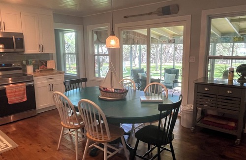 This house is set up for living with a king bed in two bedrooms and a queen in the third. Fully stocked kitchen and grill area. TV and internet access in place. Screened in porch for watching nature without the bugs. Views of the lake from multiple rooms. The yard is full of oak trees for the kids to play in the shade. Nearby golf, boat rentals, restaurants, and fun. We aim to make your stay unforgettable. Note there are outside security cameras but none on the inside.