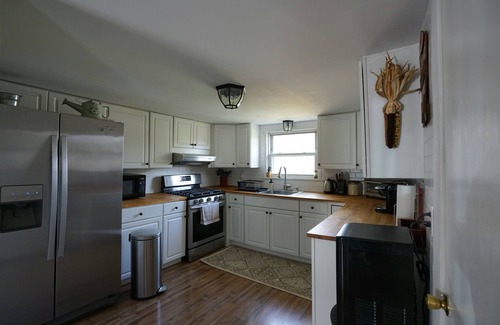 Our lakefront retreat offers a variety of inviting spaces for our guests to enjoy. There are four cozy bedrooms, each designed for comfort and relaxation. Additionally, there's a convenient sofabed available in the living room for extra sleeping arrangements. The retreat features two full bathrooms, ensuring that guests have ample space and convenience during their stay. New washer and dryer units ensure a hassle-free stay, while fresh linens and towels add to your comfort.