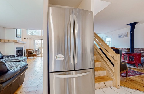 From morning coffee to aprés-skis and epic sunsets, the private deck is an ideal perch for outdoor leisure. A row of Adirondack chairs welcomes you and your guests for waterfront living. Dual fireplaces on either side of the living room provide plenty of toasty home comfort for group gatherings. The smart TV sets the stage for family movie nights. The loft living space offers a cozy nook for quiet reading. The full kitchen includes all the major appliances, cookware, and utensils you'll need for easy meal prep.