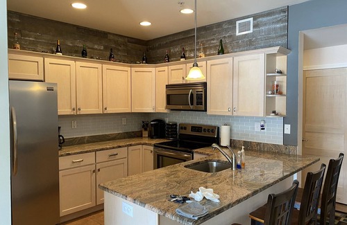 2 Bedroom Condo with Balcony, Bedding and Kitchen