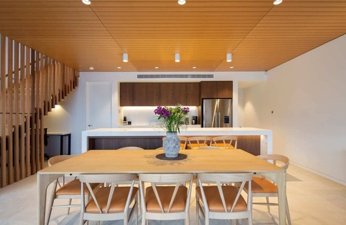 The modern kitchen is fully equipped with quality appliances, cookware, and essentials, plus complimentary coffee and tea. Fresh premium linen and towels are provided for your stay. While the villa is not serviced during your visit, mid-stay cleaning can be arranged in advance for an additional fee.