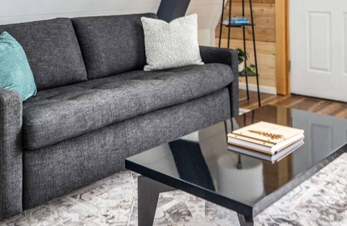 The cabin features three bedrooms, one bathroom, and a pull-out couch that can comfortably sleep up to eight guests. The cozy interior is designed with comfort in mind, with comfortable furniture, modern amenities, and tasteful decor. The large living room offers a perfect spot for relaxation, while the fully equipped kitchen has everything you need to prepare delicious meals.