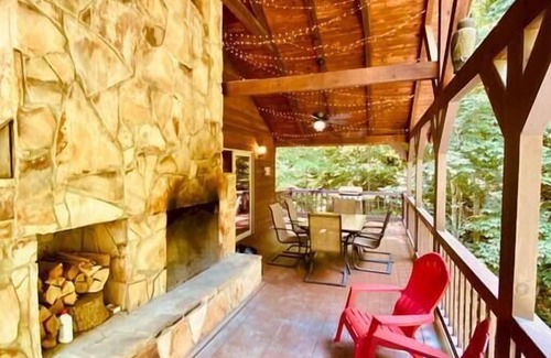Welcome to Lakewood Cabin in the RRG! This luxury cabin is privately situated on a wooded lot with a beautiful stream. Enjoy complete privacy and the sounds of nature from the spacious deck. Sip your morning coffee in the hot tub and relax after a day of adventure by the outside stone fireplace! The interior boasts a wonderful attention to detail, and is large enough for your entire group to enjoy. Entertain in the game room w/ pool table, bar, and large tv. Easy check in = smart choice!