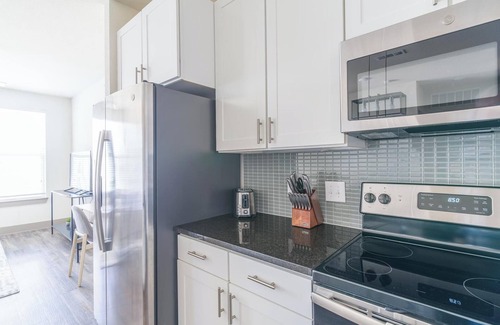 Enjoy a spacious, fully-furnished apartment just minutes from The Woodlands, perfect for monthly or extended stays. Each home features a full kitchen with stainless steel appliances, granite or quartz countertops, and an in-unit washer and dryer for everyday convenience. Start your morning at the Starbucks coffee bar, unwind by the resort-style pool, or stay active in the fitness center with Peloton bikes.