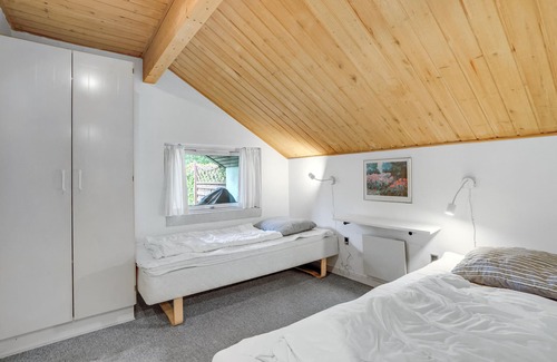 Large and spacious pool house with spa and access to sauna. It is situated on a large, partly enclosed and undisturbed natural plot with play castle, slide, swings and sandbox. The cottage is very functional, very well maintained and tastefully decorated. By the kitchen there is a pantry with work table. In the pool, young and old can have a lot of fun and then enjoy a massage in the jacuzzi. You can walk to the recreation center of the area and shopping. In the recreation center of the complex there are playground, mini golf, tennis court, soccer field, bouncy cushion, gill hut, goats to pet, grocery store and cafe. Not far away, accessible by bike you can visit the tank and fire museum in Oksbøl. Also visit the nature area Filsø, there are birdwatchers set up.