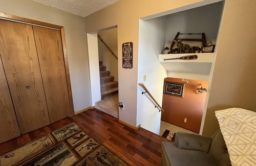 This large home is nestled on 162 acres of private property.Large enough to accommodate bigger groups but cozy enough for smaller groups as well,, Lots of parking for 4 wheelers, boats , snowmobiles, trailers etc,, centrally located to several lakes, 4 wheeler trails, the mesabi bike trail, fortune bay and giants ridge. Come home from a long day of skiing, fishing ,, or riding the trails ,, and enjoy the fireplace , sauna , pool table or ping pong.. we also have 2 outdoor fire pits for a relaxing evening outdoors looking at the stars or the northern lights! Do you just want to relax on the property?? ,, we also have hiking trails and cross country ski trails on the property.Bird feeders are always full and a chance to see the local wildlife is always fun.