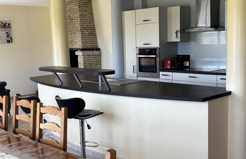 Near the landing beaches, 1:00 from Mont Saint-Michel and the city of the sea in Cherbourg. Independent house. Stay. Kitchen. 1 bedroom on the ground floor (1 bed 140) .4 bedrooms upstairs. 1 bed 140. 2 beds 90 bunk. 6 beds 90. 1 cot.2 bathrooms. 2 toilets. Fireplace. TV. DVD player. Hi-fi system. Internet access. Washing machine. Dishwasher. Sheets and linens for rent. Housekeeping service. Dishes delivered to the lodging in supplement. Closed ground. Picnic tables. Portico. Terrace. Barbecue. Shelter. Cycling available.