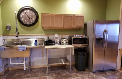 Price is for up to our 15 guest minimum to book. For each person more than 15 add an additional guest for correct price. This facility is perfect for large groups. Our bunk style lodging has separate sleeping quarters, bathrooms, and shower facilities for male and female. Featuring a large commons area to hangout, Wi-Fi, & 65"TV. The kitchen has a full size refrigerator, electric cookplates, skillet, griddle, coffee maker, toasters, countertop convection oven, and microwave. Great view from back deck. On-site firepit, ski rack for storing skis outside, & boot dryer.