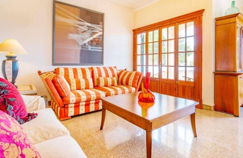 The interior of "Es Ferrutx" is classically elegant. The holiday home is - typical of traditional Mallorca - furnished with many beautiful old pieces of furniture, some of which are intricately carved. Shiny tiled floors, light-coloured walls and various wooden elements such as panelling and door frames are perfectly coordinated. In pleasant contrast, there are partly modern, colourful paintings on the walls. The house is very spacious, so that everyone can find their favourite spot and - especially if there are many fellow travellers - you can also withdraw from time to time. On the ground floor, there are two large living rooms, each with its own dining area, in addition to the stately entrance area and the well-equipped kitchen. Four lovingly furnished bedrooms, three of them with modern en suite bathrooms and one with a separate bathroom, complete the living offer on this level. A marble staircase leads to the upper floor, where there is another bedroom with bathroom. All bedroom and bathroom linen is included. Bath towels are also provided. This property comes with Free Wi-Fi.