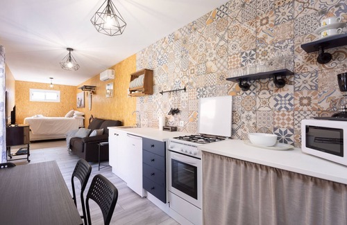 This holiday home is made up of 3 charming little houses located on a beautiful private plot. The three houses share a beautiful common outdoor area with a garden and terraces, as well as a magnificent barbecue area. The 3 are rented separately, with capacity for 2 or 3 people each. There are 3 complete studios, each with its own kitchen, dining room, living room and private bathroom. Each house has a double bed, plus an extra bed of the same size below that can be used as an extra bed if necessary. They also have a sofa, TV and Wi-Fi. All 3 houses have air conditioning. We also have a cot and high chair if needed. In short, very complete, well cared for, with beautiful details and everything you need for a unique stay.