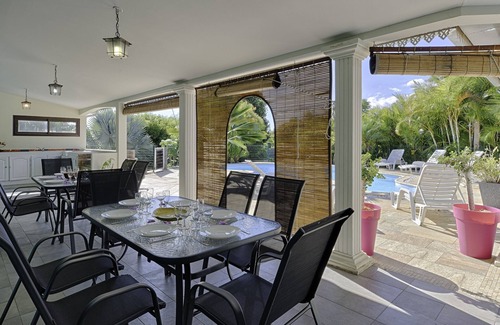 The villa "Le Latanier Bleu" is composed of 6 air-conditioned double bedrooms including a master suite, a lounge area with a smart TV, wifi, a large veranda overlooking the pool, an outdoor kitchen, 2 barbecue, a games room with billiards, a large courtyard with trees and a swing. Linens, towels, beach towels and bleaching are included in the price. The cot is provided on request.