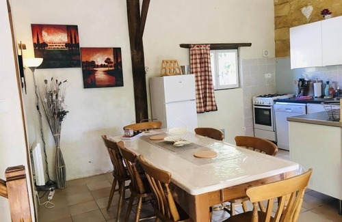 A warm welcome and a commitment to your well being in this difficult health crisis awaits you at our beautiful siteSet in 2.5 acres, this delightful four bedroom cottage ,sleeps up to 7 max . Converted from an original tobacco drying barn,it has retained its beams and honey coloured stone walls but offers the modern comforts of home.The property is arranged over 2 floors. Downstairs consists of a large open plan living, dining and kitchen area The kitchen has a gas cooker ,fridge/ freezer,dishwasher,microwave,coffee machine,kettle and toaster along with crockery and all cooking utilities.( A payable washing machine is available communally) The living space offers two sofas and two armchairs with satellite tv (french and English)and a dvd player for those downtime moments. The dining area has a large oak table with7 chairs.There are also two shower and toilet rooms. Free wifi throughout the house/groundsUpstairs there are 4 bedrooms- two double,one twin and one single.All have built in wardrobes and have fans for those warmer evenings.Outside the property has its own beautiful private terrace with patio dining furniture,parasol,outside lights and an individual charcoal bbq.Our site offers many different types of holidays.For the family it offers a safe space for children to play to meet other children and to enjoy with the additional facilities of table tennis,Boules court, badminton,volleyball,football and basket ball nets,trampoline and two swing areas as well as our pools one heated (9m x 5m) and a larger pool (11m x 7m) unheated both fenced alarmed and set aside from the houses For couples wanting a calm environment then profit from the gardens and views taking woodland walks with all its natureFor those wanting to profit from the history this is the region of the Hundred years war with castles and Bastide towns galour. Caves are plentiful and offer a respite from the heatAlternatively for the more active we have several local golf courses, canoeing, the dordogne river is a 5 minute drive away, horse riding, tennis, parascending, hot air balloon rides and aquaparks. Failing all that then just enjoy the gastronomy of the area with fine Perigordine cuisine with a superb restaurant /bar a 5 min walk away and access to the local wine areas of Cahors Bordeaux Gaillac and Montbazillac