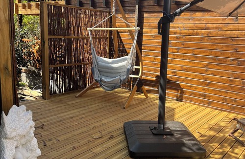 Relax in the garden (enjoy the outdoor furniture!) or sip a drink on the deck or patio of this 646-sq-ft chalet. As for the great indoors, you can come inside and enjoy the WiFi and TV.