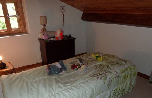 The cottage is located in a very quiet hamlet, surrounded by woods, with its animals: Dwarf goats, geese, chickens, pigeons and soon 2 alpaca that walks on the 5000m2 of lawn and fenced woods and will come to beg you some pieces of bread or delicacies.
