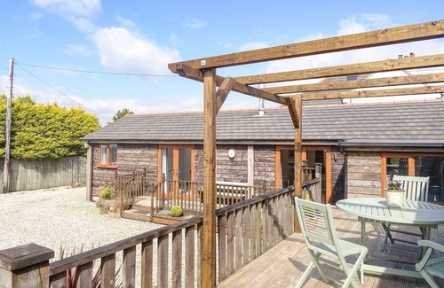 Lilys Pad is single-storey and consists of a kitchen/diner with an electric oven and hob, microwave, fridge/freezer, washing machine, dishwasher, dining seating for four, and a sitting room with Smart TV and woodburning stove. The bedrooms both have en-suite shower rooms and consist of a king-size with Smart TV and a twin with TV. Outside there is an enclosed decking with furniture, communal land, plus off-road parking. Two well-behaved dogs welcome. Travel cot and highchair available. Within 2 miles you will find a shop, and within 1.5 miles, a pub, and please note this is a smoke-free property. WiFi, fuel, power, bed linen, and towels included in the rent. Explore the countryside of Devon with a stay at the delightful Lilys Pad. Note: Check-in 4 pm, check-out 10am. Note: This property can be booked with Ref. 1145064, together sleeping up to 8 guests.