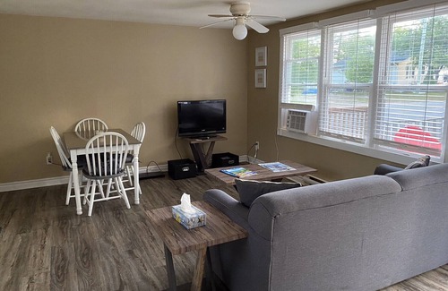 1 bedroom with full size kitchen and living room. 2 min. walk to all the surf shops and restaurants at Beach 1. 5 min. drive to Walmart and Tim Hortons. Weekly rentals in July and August. 1 bedroom + pull out couch sleeps 4. We also have a 4 bedroom available on the same property. Please bring your own pillows, bedding, towels and toiletries. Cutlery, pots, pans are supplied. Very few cottages in Wasaga Beach have what we offer; free parking and walking distance to Beach 1. If you’ve never been to Wasaga Beach, it’s important to know that Beach 1 is the most famous beach on the strip. It’s where you will find the most restaurants, shops and of course, people.
