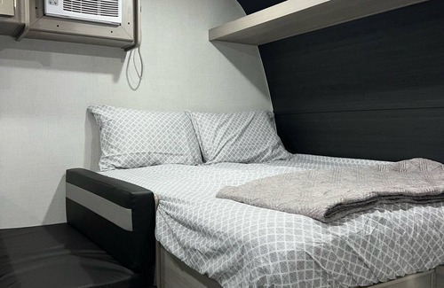 This lovely space offers open scenery with privacy. There is a kitchen, bath, queen bed and a twin bed. This camper has everything you need to live in it comfortably during your stay.