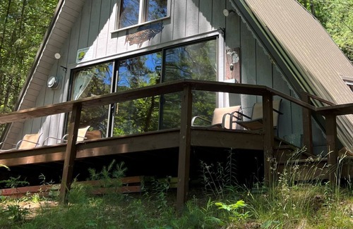 Beautiful Little Manistee riverside A-frame cabin on private road. Fish or kayak right from your own dock. Relax and enjoy the natural beauty on the large decks. Close to Ludington, Manistee, and Lake Michigan.