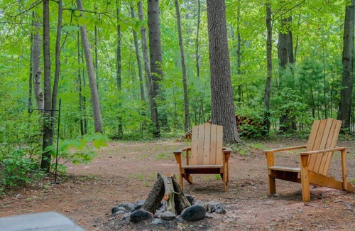 Feel free to utilize the shared outdoor fridge located at the back of the home. For your exclusive enjoyment, we provide a fire pit, picnic table, and propane grill. Inside the cottage, you'll find an electric kettle, French press, and a selection of coffee and teas. The cabinet holds wine glasses, cups, plates, silverware, and everything you need for cooking on your private grill. Across the road, behind the cottage, you'll find a rustic outhouse with a bucket shower, soaps, and your own private camping toilet! During the summer months, there's a freshwater spigot available next to the refrigerator at the back of the house. Please note, we kindly request no cats.