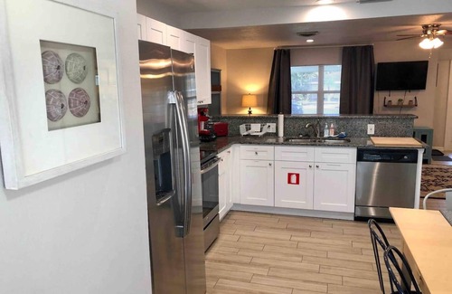 Make yourself at home in the newly renovated fully equipped kitchen with stainless appliances (coffee maker (kcup & drip), toaster, etc.) and dining area.