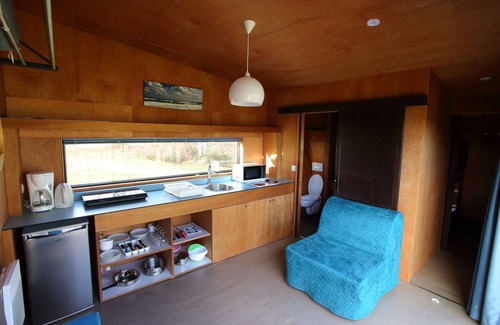 a kitchenette with induction hob and microwave to allow you to cook independently, a kettle, a coffee maker, a mini fridge,